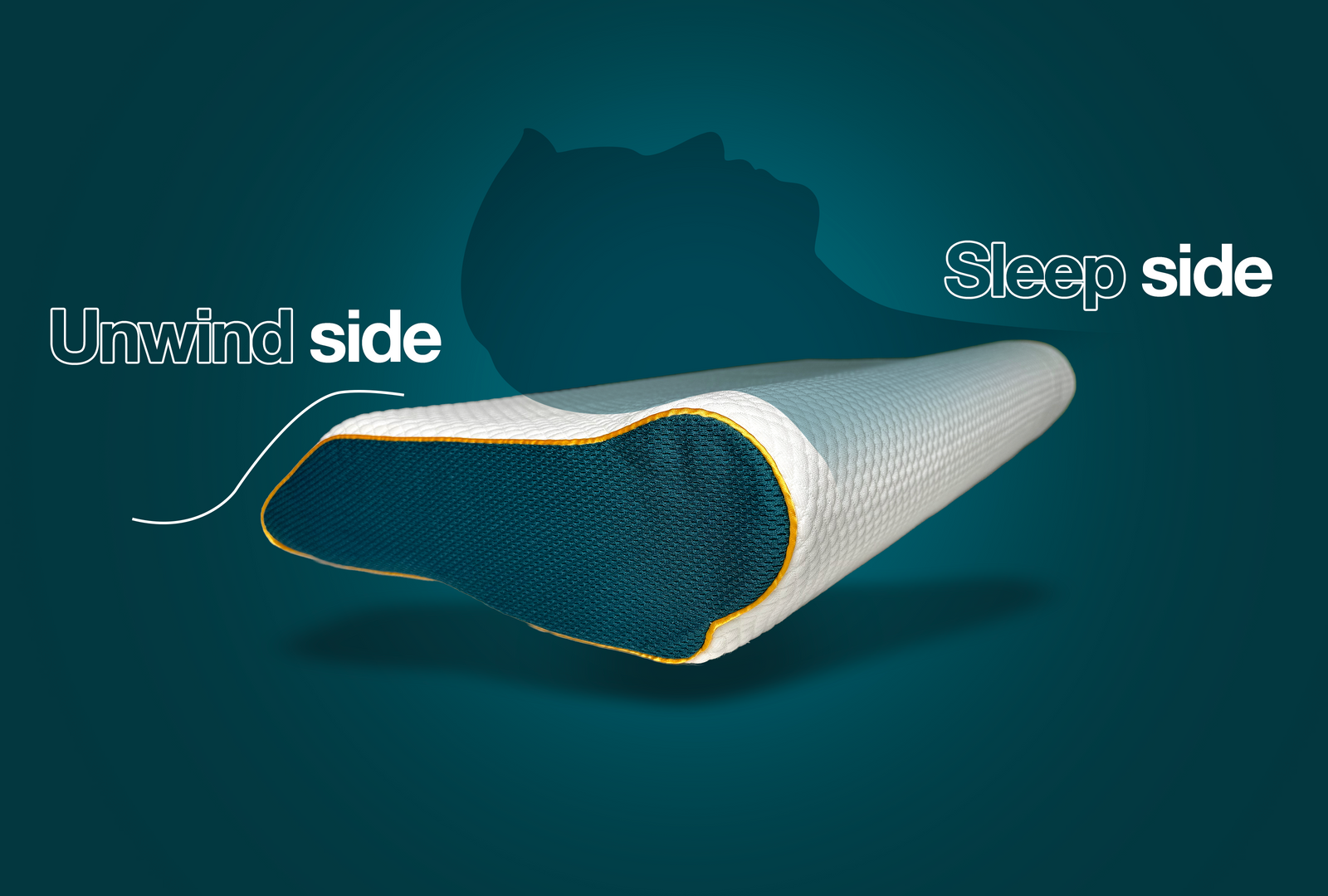The sleep side of the custom-fit pillow uses premium, high-performance materials and our proprietary neck-support design to gently fill the gap beneath your neck and follow the natural curve of your cervical spine. By maintaining proper alignment while supporting your head and neck, this side is engineered to deliver deep comfort and restorative rest—so you wake up energized, pain-free, and ready for the day.
